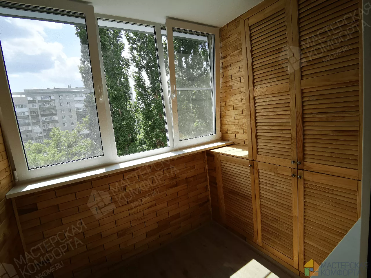Компания «Мастерская комфорта» проведет работы по остеклению и отделке балконов в квартире, превратив их в еще один островок уюта в вашем доме. При этом стоит такое преображение будет недорого.