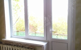 - Балконный блок с дверью, расположенной в среднем части. По бокам – окна с открывающимися или глухими створками. По-другому такую конструкцию называют «чебурашкой» из-за визуального сходства с известным мультипликационным героем.